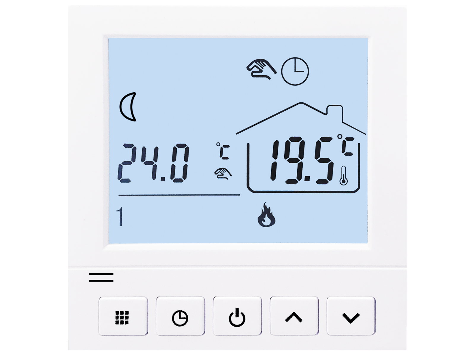 - Позволяет установить до 4 периодов работы в день с настраиваемыми временем и температурой.