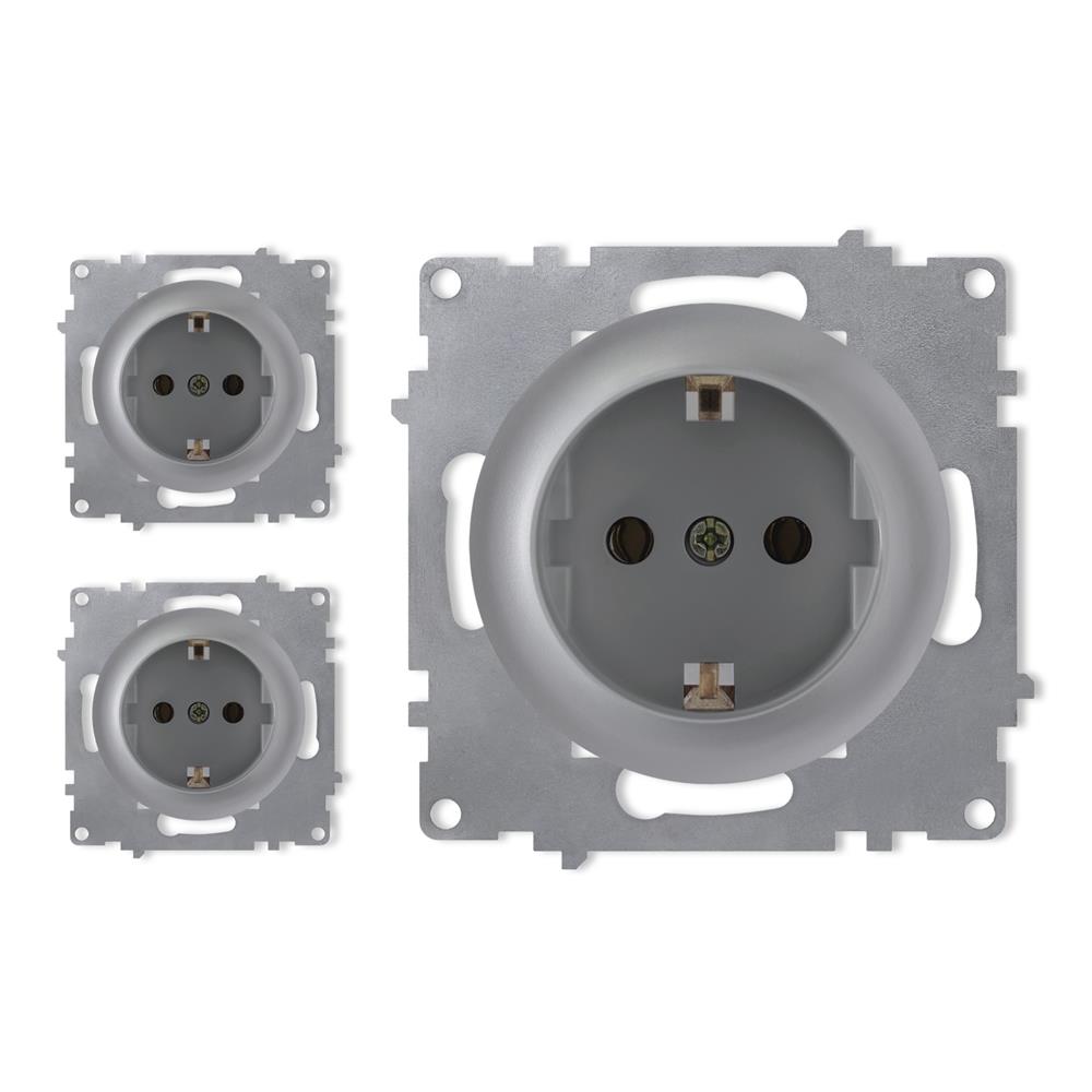 Комплект. Розетка с заземление м, винтовые контакты, цвет Серый (3 шт.)