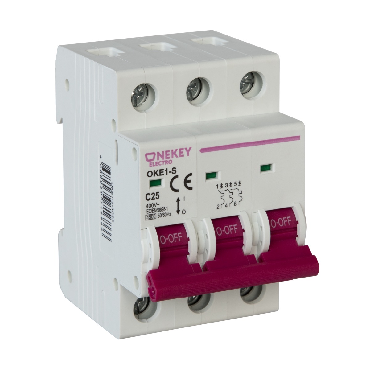 Серия автоматических выключателей OKE1-S имеет характеристику срабатывания категории С. Срабатывание автомата происходит практически мгновенно, при скачке тока, превышающем номинальный в 5 – 10 раз. Антипрогарная пластина защищает корпус изделия от прогорания при коротких замыканиях. Пластиковый корпус и детали аппарата выполнены из материала, не поддерживающего горение. Все это гарантирует повышенную электробезопасность изделия.