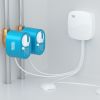 Модуль получает сигнал о протечке от проводных датчиков и передает сигнал на перекрытие воды на шаровые краны с электроприводом. Обеспечивает световую и звуковую индикацию при аварии.