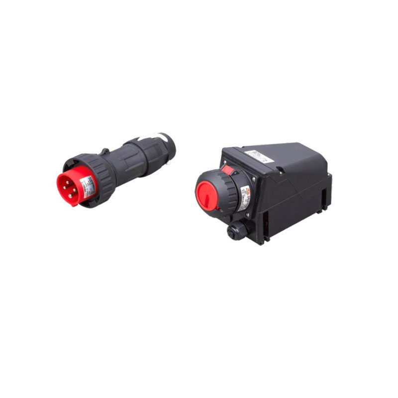 Соединитель взрывозащищенный из стеклоармированного полиэстера, 5-ти контактный на номинальный ток 16А, рабочее напряжение 480-690В, с расположением PE контакта в часовом формате на 7 часов