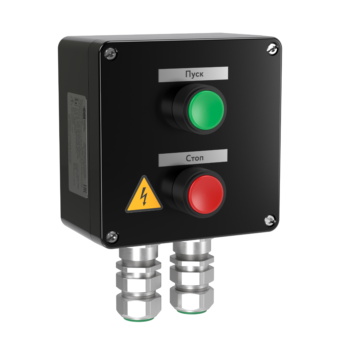 УЗНАТЬ ЦЕНУ - Артикул: 2281188Пост управления SSCSE-012 (1 кн-зел+1кн-кр, 2 каб.ввода) Ex de